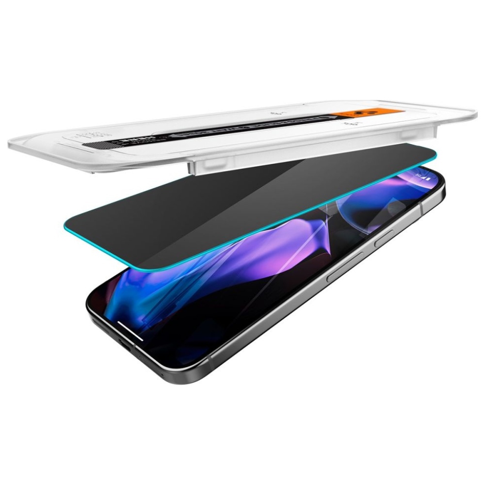 Tempered glass with a revolutionary installation method – if installing tempered glass has ever been a concern for you, your worries are now over! The „EZ Fit” tempered glass from Spigen comes with a perfectly cut installation frame for the front of your phone, ensuring precise alignment on the screen. The manufacturer has simplified the installation process to the point that it is fully intuitive for any user. The Privacy Glass is a thin layer that has been hardened to 9H during the manufacturing and tempering process, making it resistant to scratches, even from sharp objects like keys or knives. The glass is coated with an oleophobic and hydrophobic layer that prevents fingerprints and other smudges on the screen. It is crystal clear and perfectly displays colors. It does not affect touch sensitivity and has an exceptionally smooth surface, making touch gestures a pleasure. An additional feature is privacy protection – the glass blocks light from certain angles, creating a similar effect to that used in ATMs. This glass is specifically designed to protect your screen from scratches and minimize the risk of damage in case of unexpected drops.