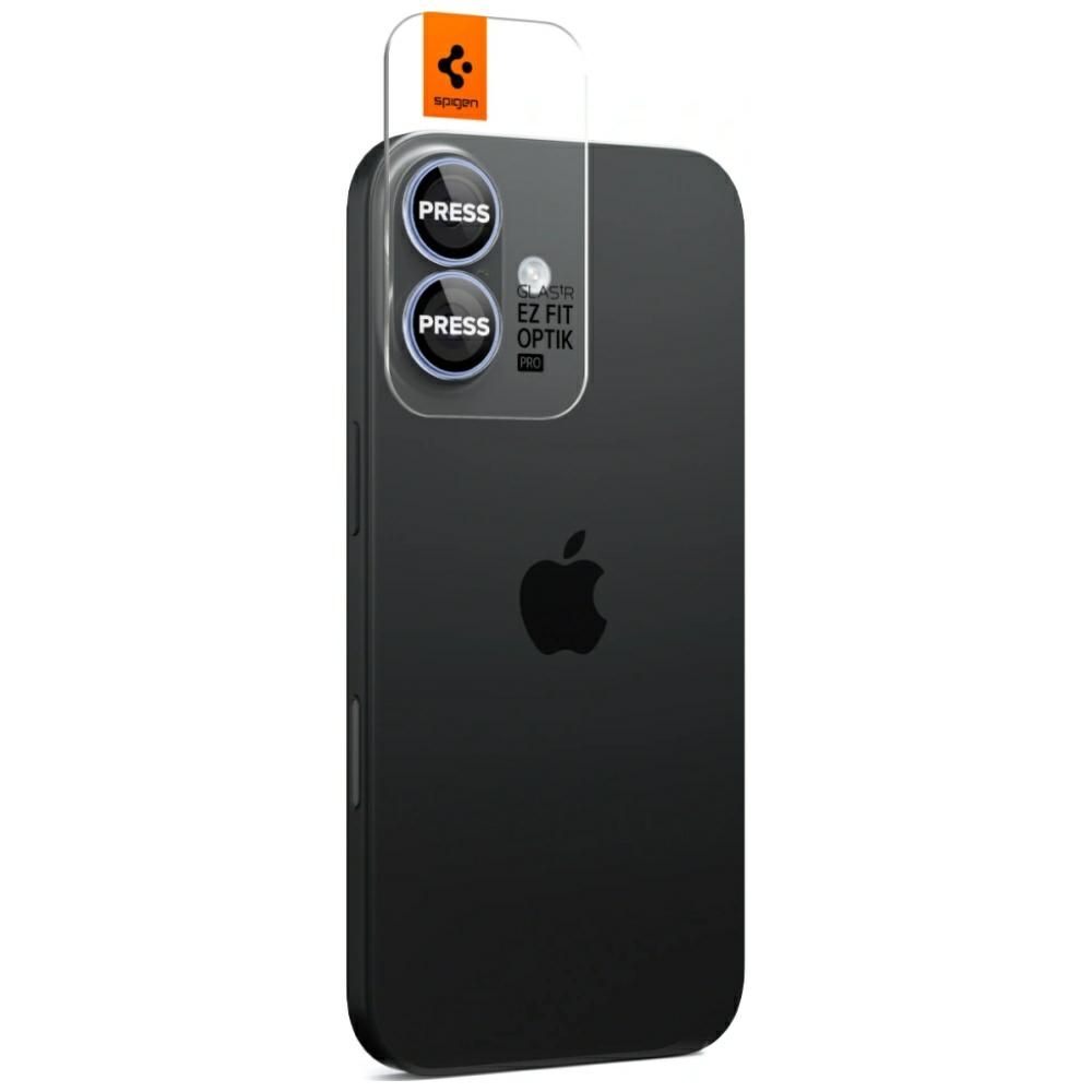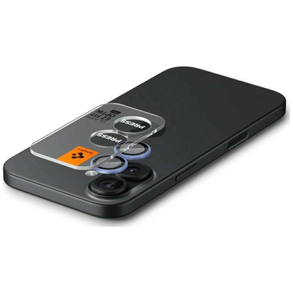 The Spigen Optik Pro Glas.TR EZ Fit for iPhone 17 / 16 / 16 Plus in Blue is a high-quality tempered glass that provides effective protection for the camera module against scratches, cracks, and dirt. Thanks to True Transparency technology and an oleophobic and anti-reflective coating, it maintains full clarity and image quality while minimizing fingerprints and light reflections.