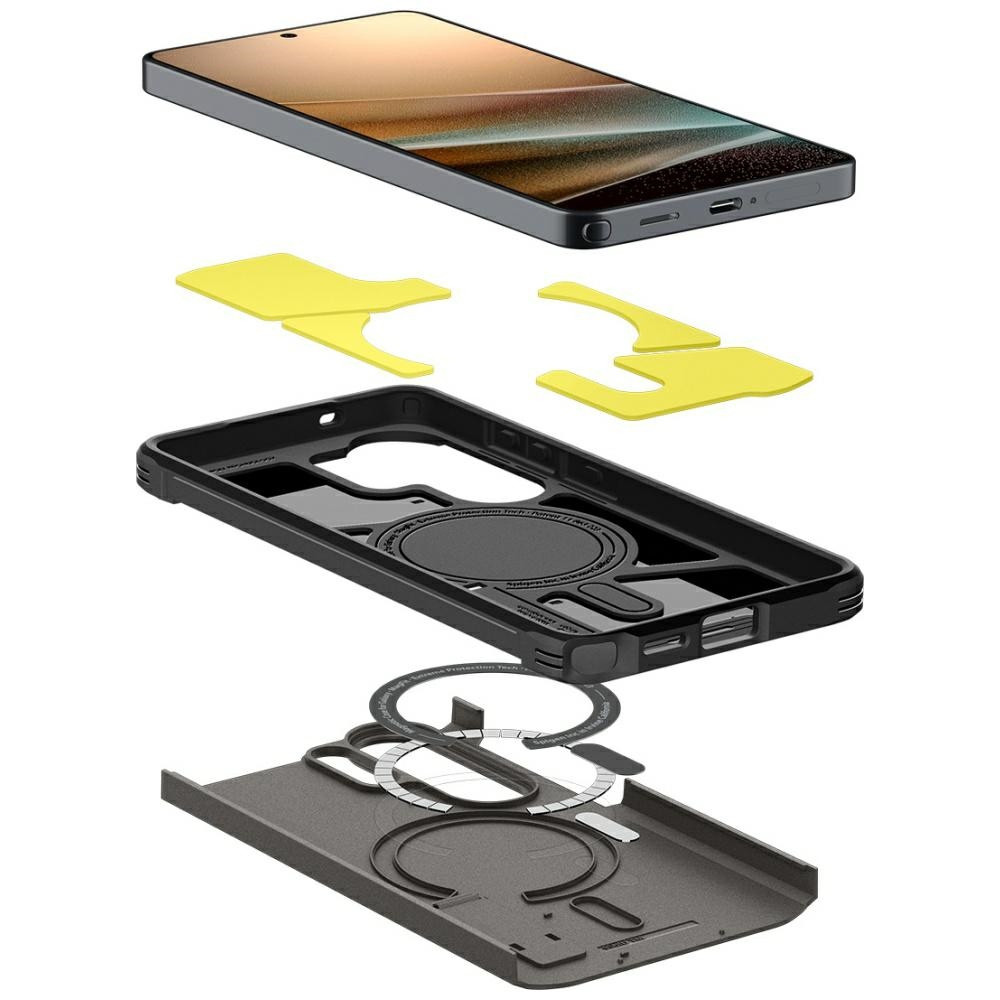 The Spigen Tough Armor Mag MagSafe case for Samsung Galaxy S26 Ultra in Gunmetal is designed for users who expect maximum protection and practical solutions without sacrificing modern design. The solid armored construction in an elegant metallic gunmetal finish stands out with a stylish industrial character that perfectly complements a large and advanced smartphone.The case is made from a combination of rigid polycarbonate (PC) and flexible TPU, providing comprehensive protection against scratches, impacts, and drops. Reinforced corners with Air Cushion technology effectively disperse impact energy, protecting the device even in demanding everyday situations.