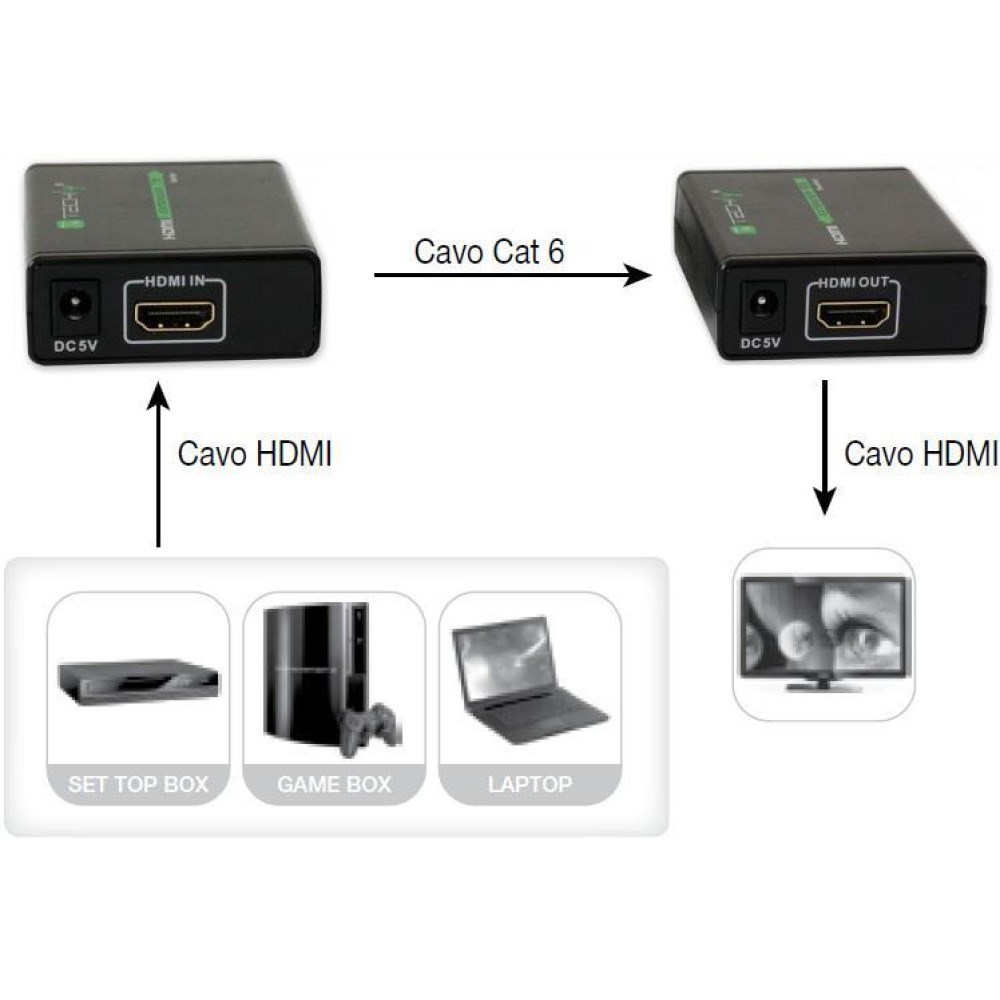 Techly Amplifier HDMI Full HD up to 60m of cable Cat. 6 / 6A / 7 IDATA EXT-E70