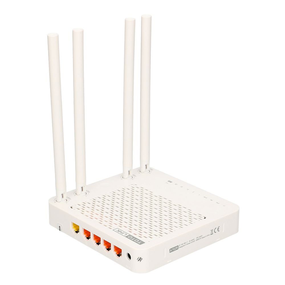 Totolink A702R is a dual-band wireless router compliant with the most advanced 802.11ac standard, which can provide a total Wi-Fi speed of up to 1167 Mbps. Its features include dual-band capacity and four external high gain antennas. The router provides a stable network connection to the Internet. This wireless router A702R is ideal for home or small office.