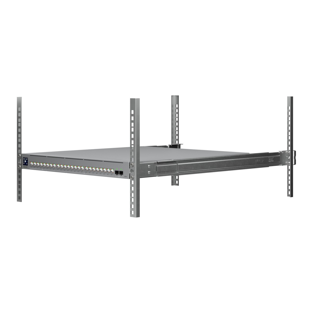 Front view of the Ubiquiti Enterprise switch, showing Ethernet ports with color LED indicators