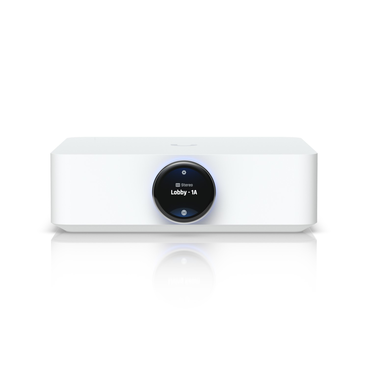 The white Ubiquiti UPL-Amp-W looks aesthetically pleasing and fits in with modern interiors. A rotary knob with LCD touchscreen (1.43 inches) allows quick adjustment of settings. The amplifier can act as a networked amplifier, connecting to home automation systems and providing full control over the sound on the UniFi Play network.