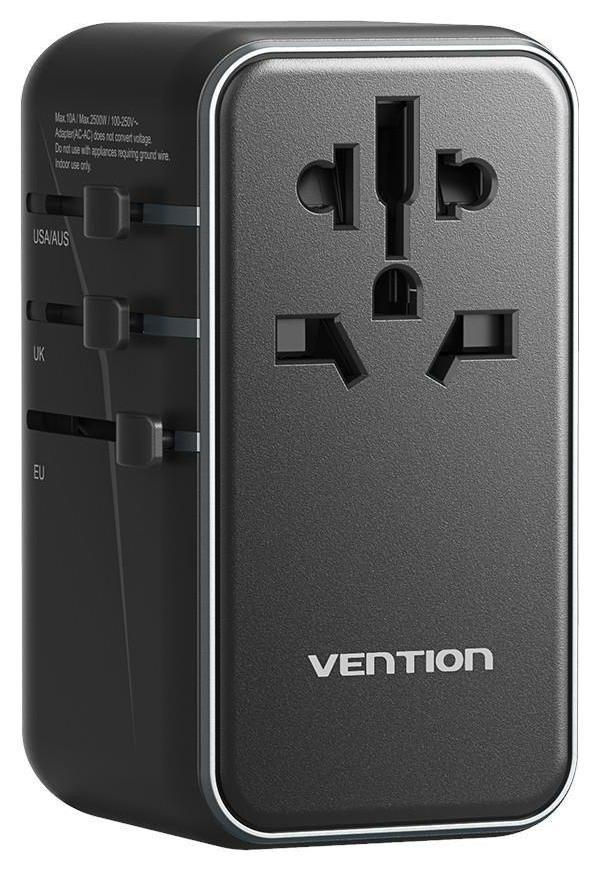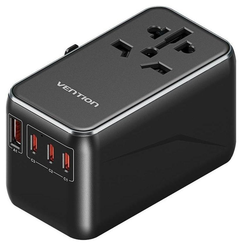 Uniwersalny adapter podróżny z ładowarką Vention 100W GaN 1x USB-A 3x USB-C czarny