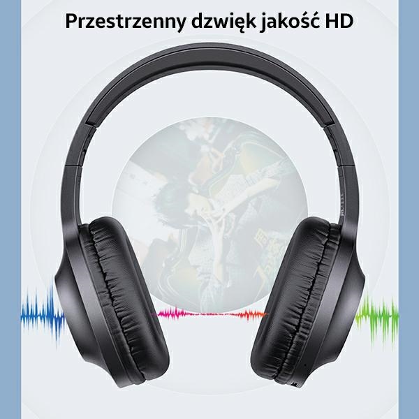 Comfortable wireless over-ear headphones with a classic shape and color. The device is precisely crafted and features an ergonomic design that ensures comfortable wear and use. The adjustable headband adapts to different head shapes, while the soft and breathable ear cushions made of Memory Foam provide comfort for the user’s ears.