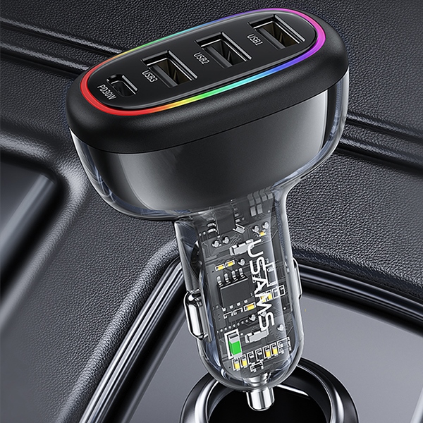 USAMS car charger 1xUSB-C 3xUSB-A C34 48W 3A+C PD Fast Charge black CC170CC01 (US-CC170)