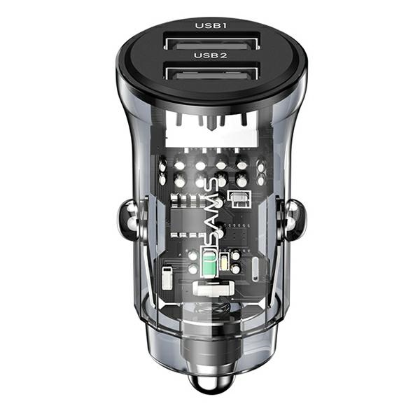 USAMS Transparent Dual USB A + A Mini Car Charger