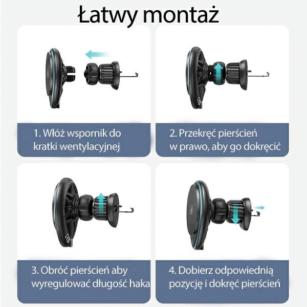 The Usams US-CD222 inductive holder is the perfect combination of convenient and efficient charging for your phone. The device not only allows you to keep your phone in a comfortable position in your car, but also offers additional functionality – wireless charging for your phone. The inductive holder supports the QI standard, so you can enjoy easy and fast charging of QI-compatible devices up to 15W.