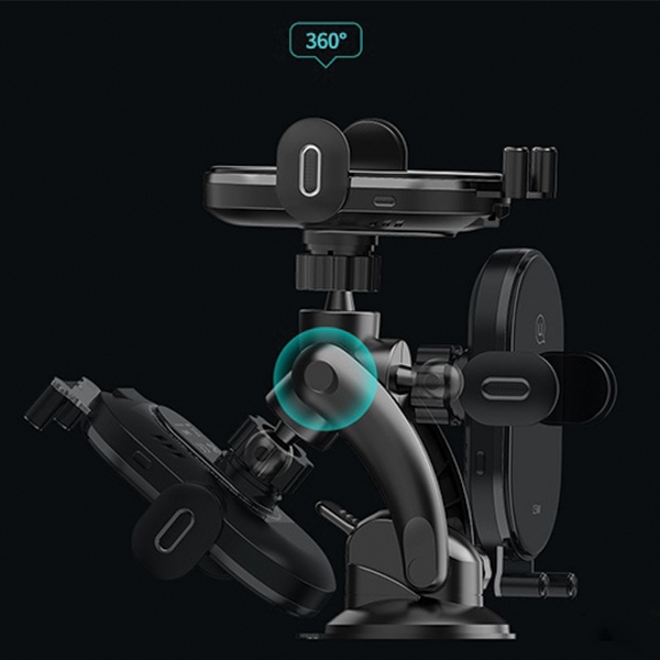 – Coil Induction Automatic clamping. After holder is power-on, clip arms will automatically stretch after 5s; put on mobile phone, clip arm will automatically draw back and clamp.