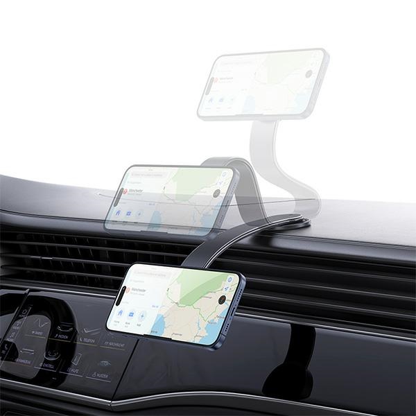The strong built-in magnet ensures a secure hold of the phone, even on uneven surfaces. Thanks to automatic alignment, the phone stays in place stably, minimizing the risk of accidental drops. It works reliably in various road conditions, ensuring safety and comfort while driving.