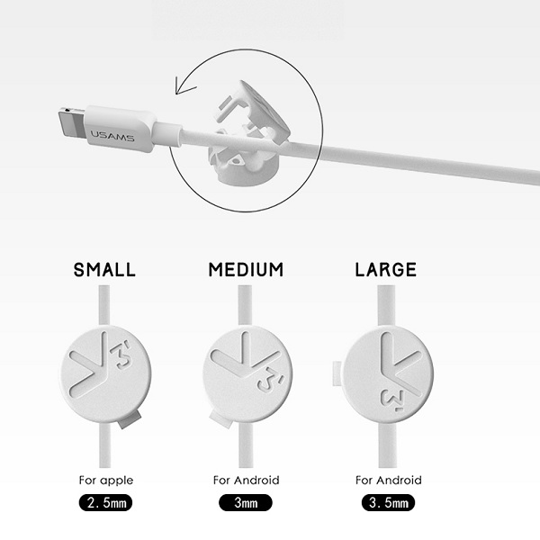 – With 3 sizes of holes, suitable for most charging cables (2.5mm Small size for Apple; 3mm medium size for Android; 3.5mm large size for Android)