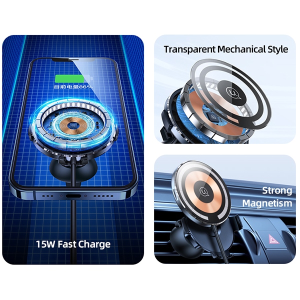 USAMS magnetic wireless holder US-CD164 15W 2-in-1 for air vent transparent CD164DZ02