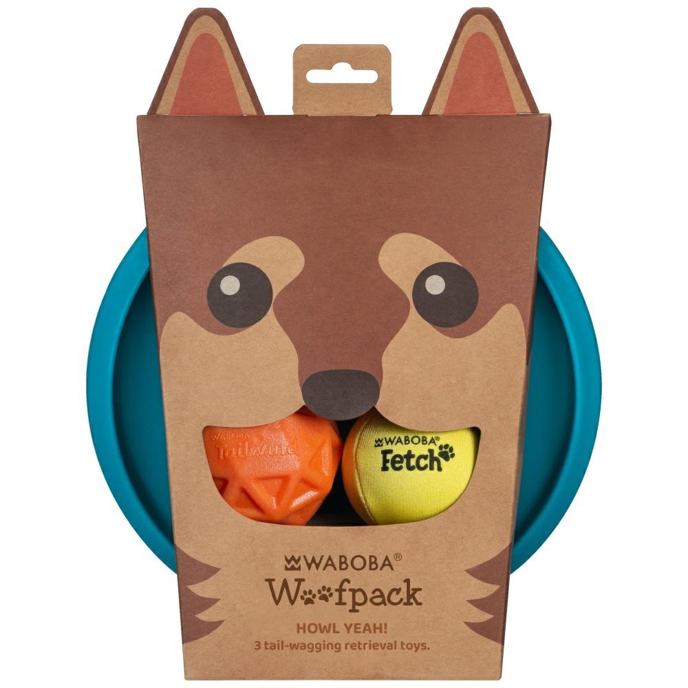 Waboba Woofpack dog set 2x balls 1x frisbee