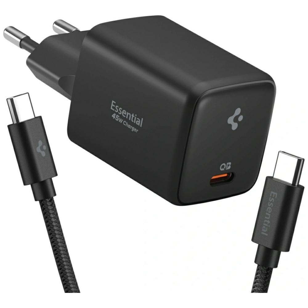 Wall charger Spigen Essential EE451EU 45W USB-C + cable USB-C/USB-C black