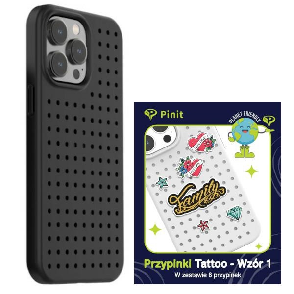 Zestaw Etui Pinit Dynamic + Tattoo PiniPhone 14 Pro 6.1″ czarny/black wzór 1