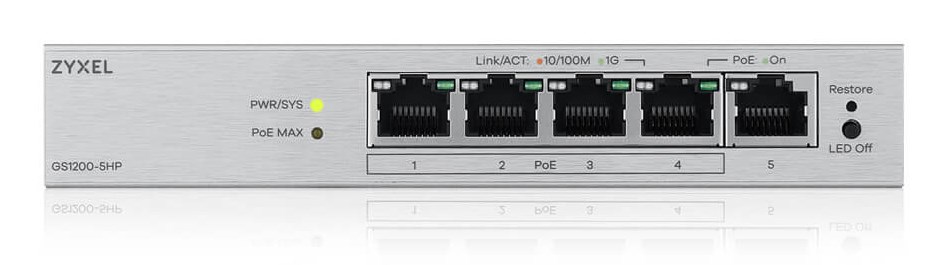 Prima pagină » Magazin » Zyxel GS1200-5HPV3 Managed L2 Gigabit Ethernet (10/100/1000) Power over Ethernet (PoE) Desktop Grey